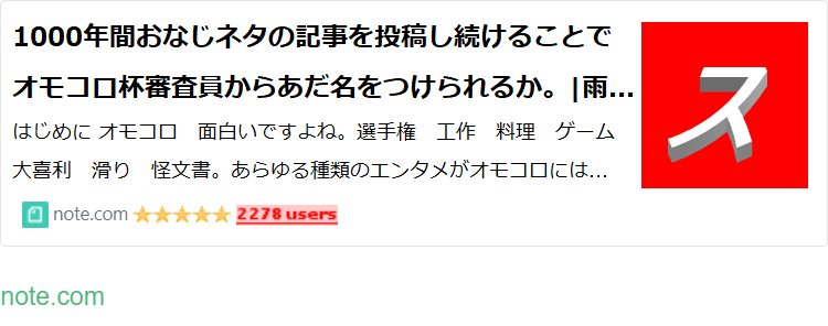 雨穴 オモコロ杯- 雨穴 オモコロ 雨の穿った穴に住む uketsuHAKONIWA horror ホラー動画 ホラー 心霊 怖い 恐怖 恐怖動画 怖い動画 Estimated income from this video 352,385 1,057,154Yen CPM 0600 yen assumed Audience rating for the number of subscribers % Action rate for the number of viewing (evaluation comments)落選作品 最初に紹介するのはこちら。 雨穴34さんの「1000年間おなじネタの記事を投稿し続けることでオモコロ杯審査員からあだ名をつけられるか。 タイトルの通り オモコロ杯に同じネタを投稿し続ける という内容なのですが、「同じネタの記事」と言いつつ毎年工夫が凝らしてあり(流石に